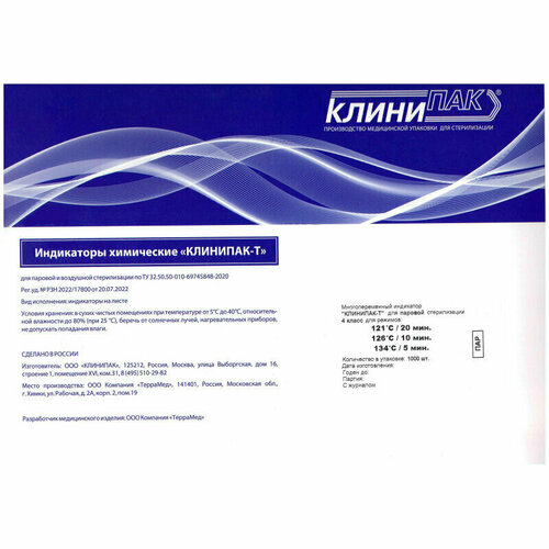 Индикатор стерилизации клинипак-т ПАР121C/20,126C/10,134C/5 1000шт/уп жур, 1734231
