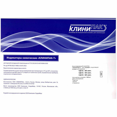 Индикатор стерилизации клинипак-т ПАР120C/45,126C/30,132C/20 1000шт/уп жур