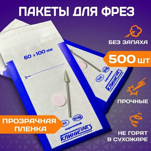 Крафт пакеты комби 60х100 мм набор 500 шт. белые с пленкой бумажные пакеты для стерилизации инструментов клинипак