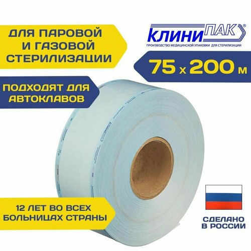 Рулон для паровой и газовой стерилизации инструментов 75 мм х 200 м (комбинированные пакеты в рулоне)