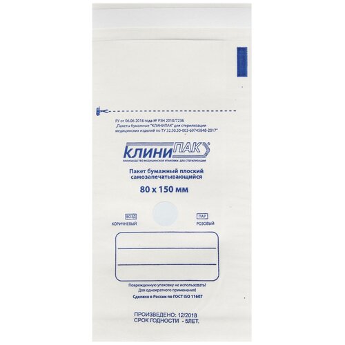 Пакет д/стерил. бум. 150 х 200 мм крафт самокл. 100 шт/уп Клинипак