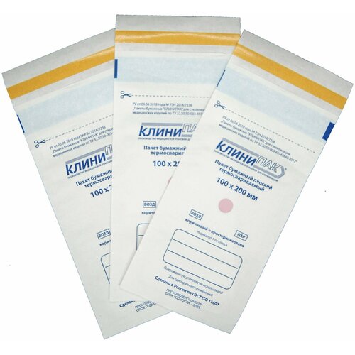 Пакеты бумажные термосвариваемые Клинипак 100мм х 200мм