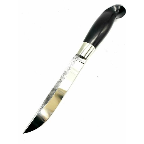 Нож универсальный "Финка Рыбака с рукоятью Чёрный граб в кованой стали" 95х18/оковка мельхиор/ножны финского типа