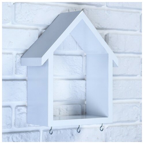 Ключница-полка Домик средняя, 3 крючка, белая, 29,5*25*10 (1шт.)