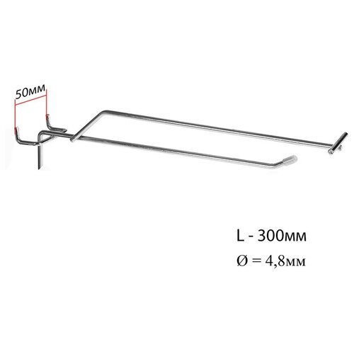 Крючок одинарный с ценникодержателем для перфорации, шаг 50мм, d=4,8мм, L=30 мм, цвет хром
