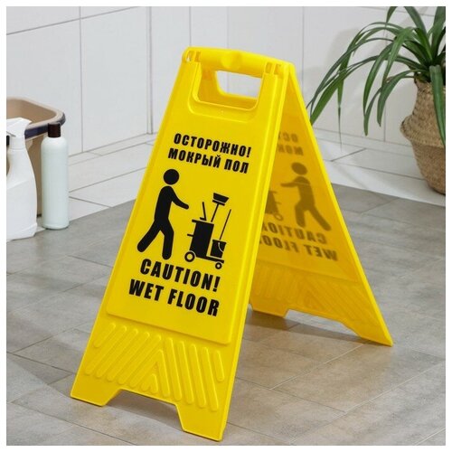 Знак «Осторожно! Мокрый пол», 61×30 см, пластик, цвет жёлтый