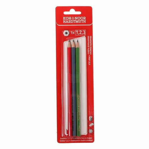 Набор чернографитных карандашей KOH-I-NOOR 3 шт, 1703, разной твердости, B, HB, H, в блистере