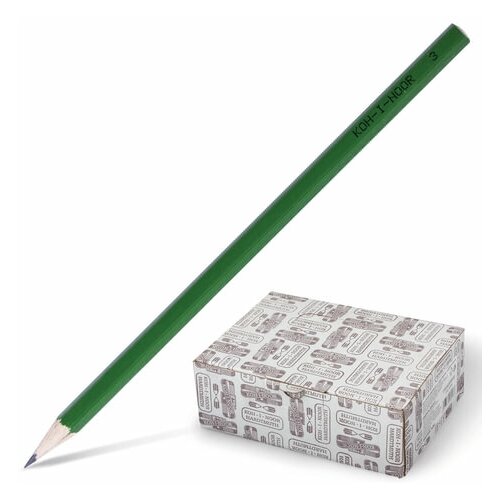 Карандаш чернографитный KOH-I-NOOR, комплект 72 шт, 1 шт, H, без резинки, корпус зеленый, заточенный, 1702003005KK