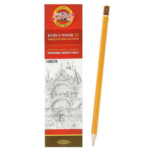 Карандаш чернографитный 2.0 мм, Koh-I-Noor 1500 2B, профессиональный, L=175 мм