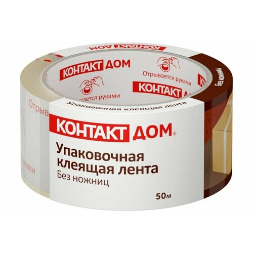 Упаковочная клеящая лента "контакт ДОМ" Без ножниц, 48мм х 50м