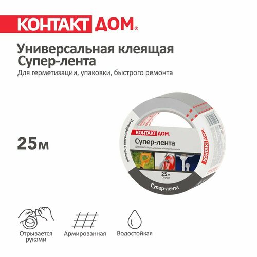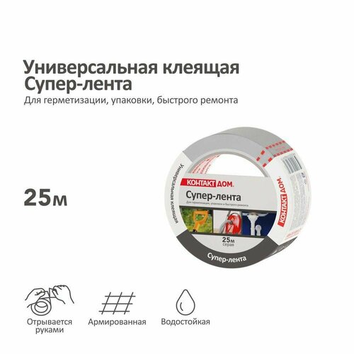 Универсальная клейкая супер-лента контакт ДОМ, 25 м, серая (ТПЛ, армированная)