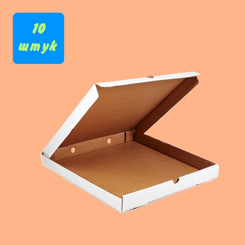 Гофрированная коробка 400*400*40мм для пиццы и пирогов, из 3-х слойного микрогофрокартона белая(Д 35-40 см), 10 штук
