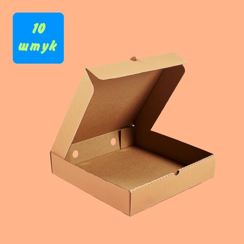 Гофрированная коробка 250*250*40мм для пиццы и пирогов, из 3-х слойного микрогофрокартона (Д 22-25 см), 10 штук