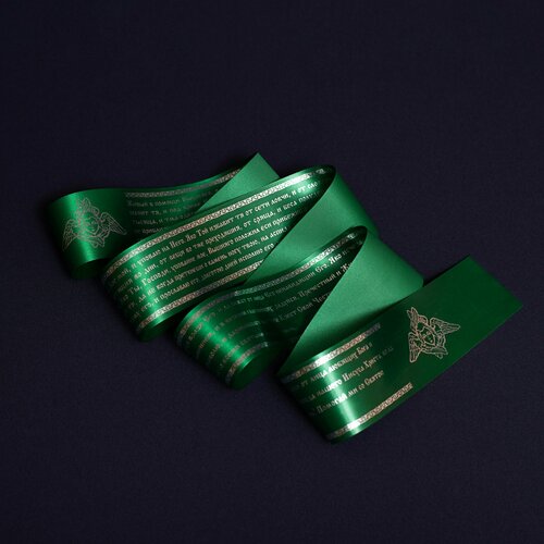 Пояс (Premium качество) с молитвой 90 псалом "Живый в помощи" и молитвой "Да воскреснет Бог "Атласная лента, сатин (Зеленый)
