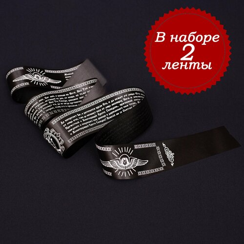 Пояс с молитвой 90 псалом "Живый в помощи" и молитвой "Да воскреснет Бог" Атласный, лента, сатин (Черный цвет) 2шт