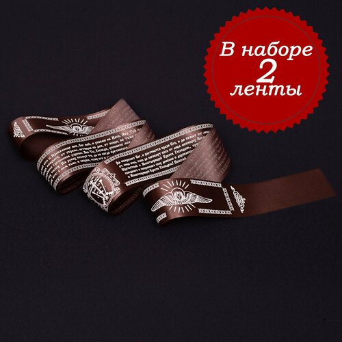 Пояс с молитвой 90 псалом "Живый в помощи" и молитвой "Да воскреснет Бог" Атласная лента, сатин (Коричневый)2 шт