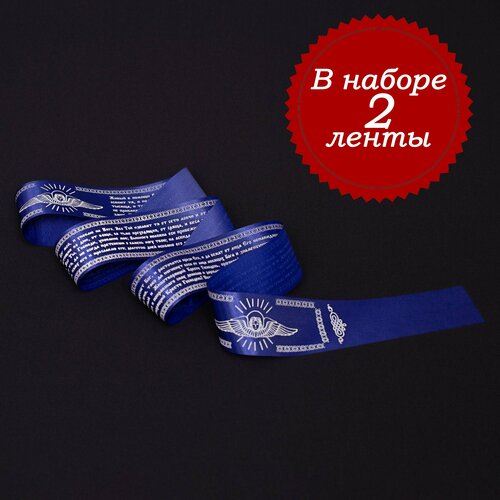 Пояс с молитвой 90 псалом "Живый в помощи" и молитвой "Да воскреснет Бог" Атласный, лента, сатин (Синий цвет) 2шт