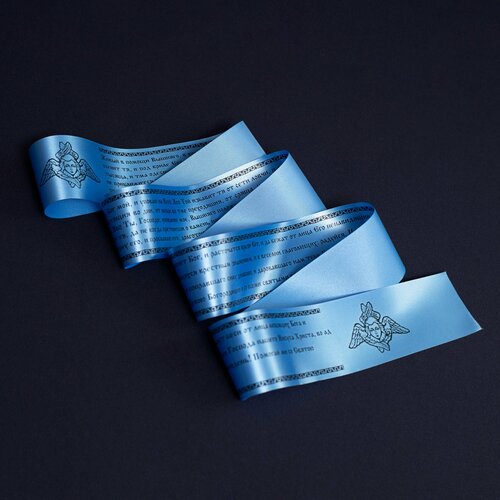 Пояс (Premium) с молитвой 90 псалом "Живый в помощи" и молитвой "Да воскреснет Бог "Атласная лента, сатин (Голубой)