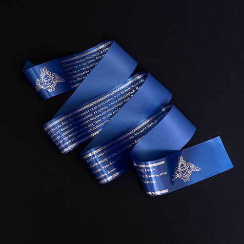 Пояс (Premium качество) с молитвой 90 псалом "Живый в помощи" и молитвой "Да воскреснет Бог "Атласная лента, сатин (Синий)