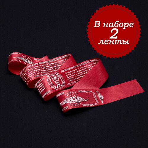 Пояс с молитвой 90 псалом "Живый в помощи" и молитвой "Да воскреснет Бог "Атласный лента, сатин (Красный) 2шт