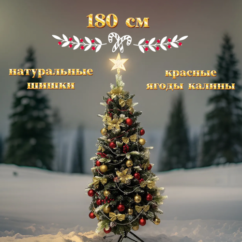 "Ель Люкс" - искусственная заснеженная ель с шишками и ягодами калины 180 см