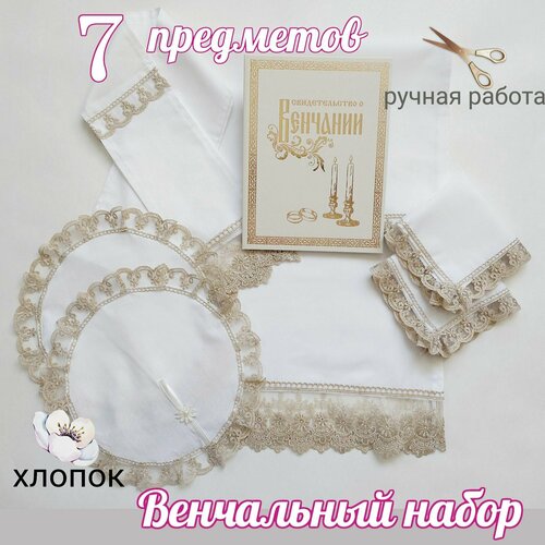 Венчальный набор "Бежевое золото", 7 предм. Рушник 2шт, салфетки 4шт, Свидетельство