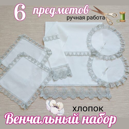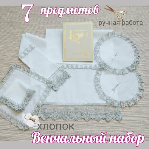 Венчальный набор "Классическое серебро" 7 предм. Рушник 2шт, салфетки 4шт, Свидетельство