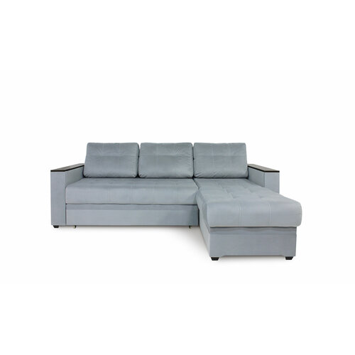 Кромма Универсальный раскладной диван (прямой и угловой) Шайн кант. Независимый пружинный блок. Еврокнижка. Светло-серый велюр Velutto 49