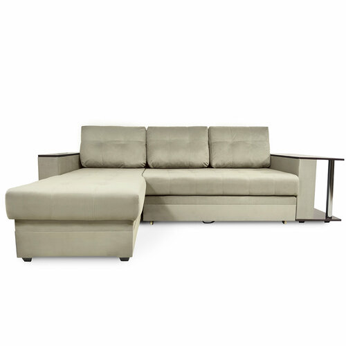 Кромма Диван Инвуд лайт 2 угловой со столом двухместный, Велюр, бежевый/ Velutto 17