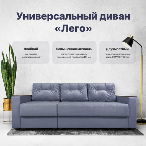 Кромма Универсальный раскладной диван (прямой и угловой) Лего. Еврокнижка. Серый велюр Velutto 49