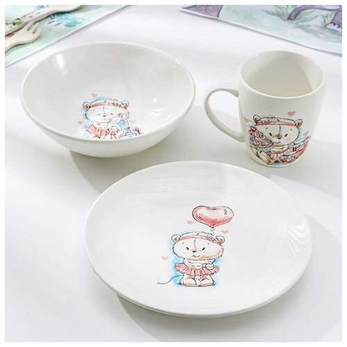 Набор посуды "Кроха", 3 предмета: тарелка d-17,5 см, миска 250 мл, d-17,5 см, кружка 260 мл