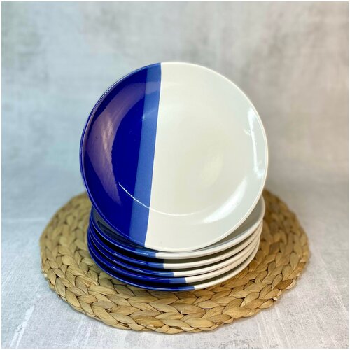 Тарелки набор из 6 шт, белые с синими полосками, керамика, диаметр 21 см