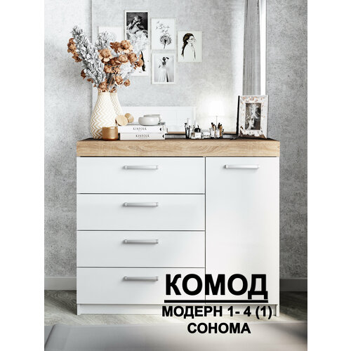 Комод "Модерн" 4 ящика, 1 дверь, ЛДСП, / сонома, В*Ш*Г (см) 95х110х40
