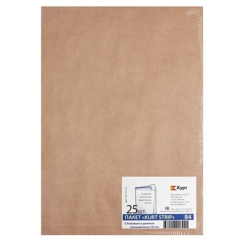 Набор пакетов крафт B4 250 х 353 х 40 мм, без подсказа, без окна, отрывная лента, 130 г/м2, 25 штук