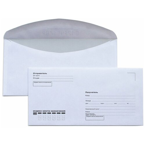 Конверт почтовый Е65 110 х 220 мм, без подсказа, без окна, клей, клапан-автомат, 80 г/м2