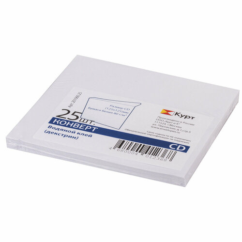 Курт Конверты для cd/dvd (125х125 мм) без окна, бумажные, клей декстрин, комплект 25 шт, 201060.25, 10 шт.