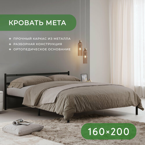 Двуспальная кровать металлическая разборная Мета, 160х200 см, черная