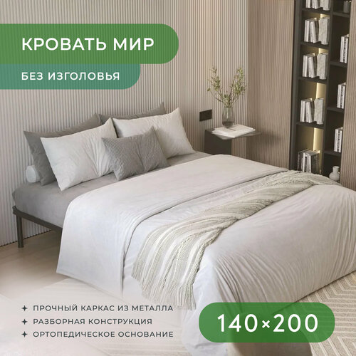 Кровать мира 140х200 черная, металлическая, двуспальная