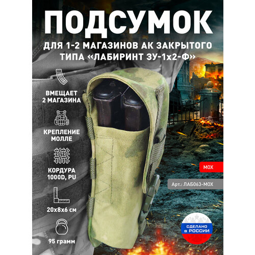Подсумок для 1-2 магазинов АК закрытого типа улучшенный "Лабиринт ЗУ-1х2-Ф" Мох