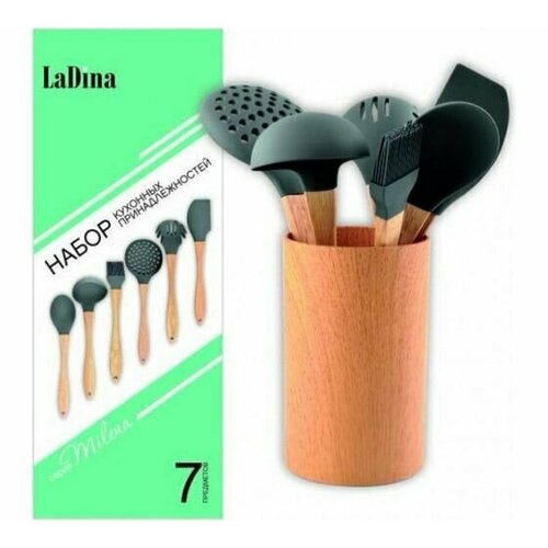 Набор кухонных принадлежностей на подставке 7 предметов нейлон деревянная ручка LaDina (18308) /1/8/
