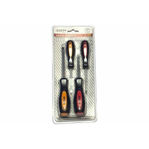 Набор отверток Ladina GREPP PH0х75 мм, PH1х100 мм, SL3х75 мм, SL6х100 мм, CrV, 2х комп. ручка, 4 шт. 202-024