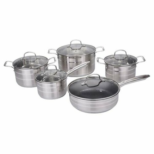 Набор посуды "LaDina" из нерж стали 10пр NELLY (Кастрюля 2,5л, 3,4л, 6л; ковш 1,8л; сотейник 3л)