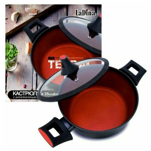 Кастрюля LaDina алюминиевая с антипригарным покрытием TERRACOTTA 51024, 24 см, 3.7 л, со стеклянной крышкой