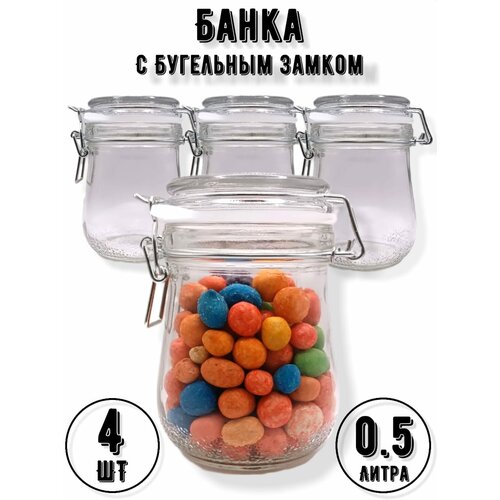 Стеклянная банка 500мл с бугельным замком, 4шт