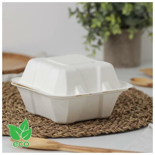 Ланч-бокс для бенто-торта и бургера, 450 мл, 15,2×15,4×8,8 см, сахарный тростник (50шт.)