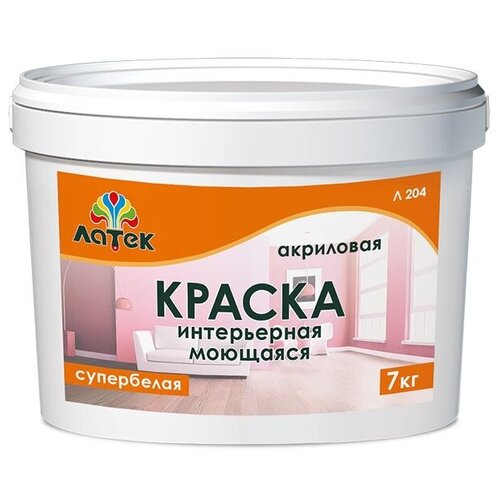Краска водоэмульсионная ЛАТЕК Интерьерная Л204 моющаяся матовая супербелая 0.14 л 7 кг