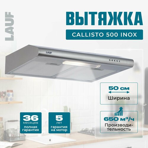 Вытяжка кухонная подвесная LAUF CALLISTO 500 INOX/50см/ производительность 650 м3/ч; LED подсветка/ обратный клапан/ низкий уровень шума