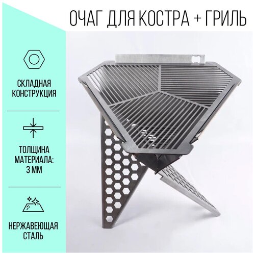 Очаг для костра с гриль решеткой, Костровая чаша, Жаровня для улицы Октагон "FireHive"