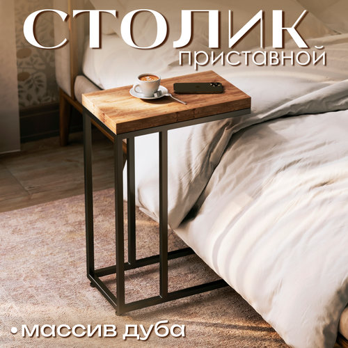 Приставной столик lzm "Индастриал" в стиле Лофт, массив дуба (40 мм) , 46х26х67 см