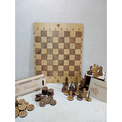 Шахматы шашки деревянные, большой набор, настольные игры, 30х40 см